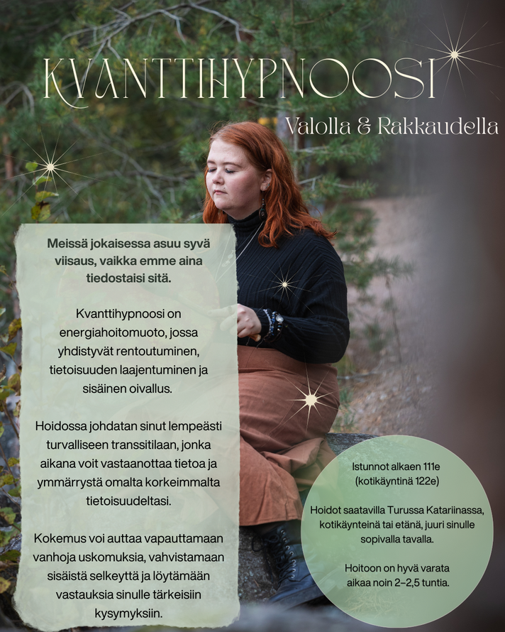Voit varata ajan kvanttihypnoosiin ja rumpuhoitoon sähköisestä varauskalenterista, viestitse instagramin kautta tai sähköpostilla valolla.rakkaudella@gmail.com
